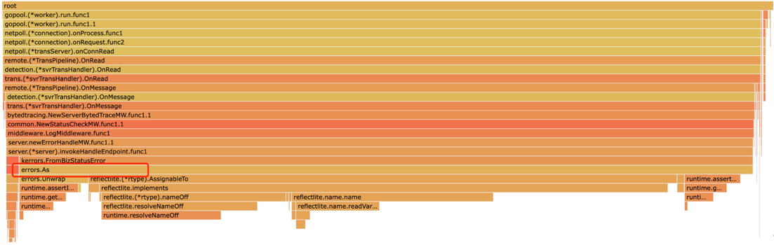 从 CPU profile 看,errors.Is 或 errors.As 出现热点问题,甚至 CPU 打满